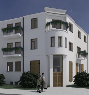 Oferujemy Państwu komfortowe, nowoczesne mieszkania w modernistycznej kamienicy z ponad stuletnią historią. Obecna bryła została nadana budynkowi podczas przebudowy w roku 1934, a przeprowadzony remont wydobywa piękno przedwojennego stylu, jednocześnie łącząc detale historyczne ze współczesnymi oczekiwaniami nabywców.